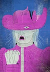 Blue Woman Lounging on Red Bull Sofa ll